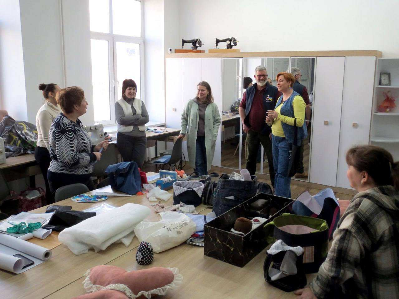 Представники фонду побували й у волонтерському «Центрі допомоги Олександрія», де побачили, як для жінок-ВПО видають гігієнічні набори, теж передані сюди за підтримки британських партнерів. Окремо відвідали швейну майстерню на базі Олександрійського будинку дитячої та юнацької творчості, де поспілкувалися з майстринями із числа вимушених переселенців, які навчаються шити на обладнанні, також переданому фондом «Друзі Олександрії».